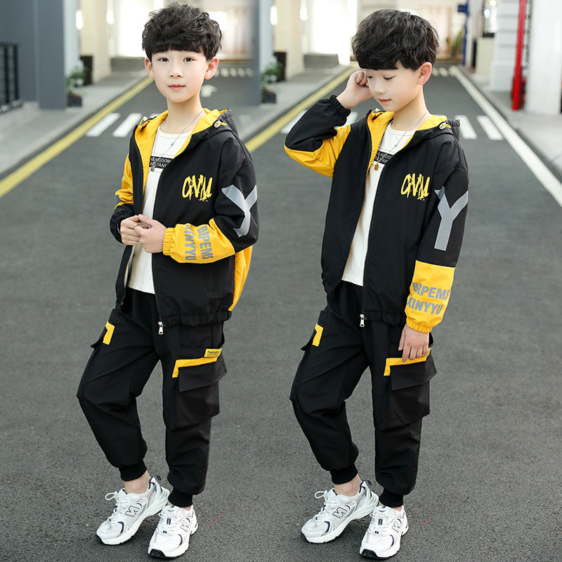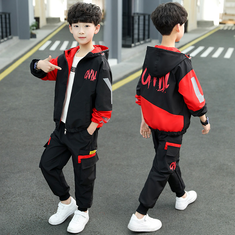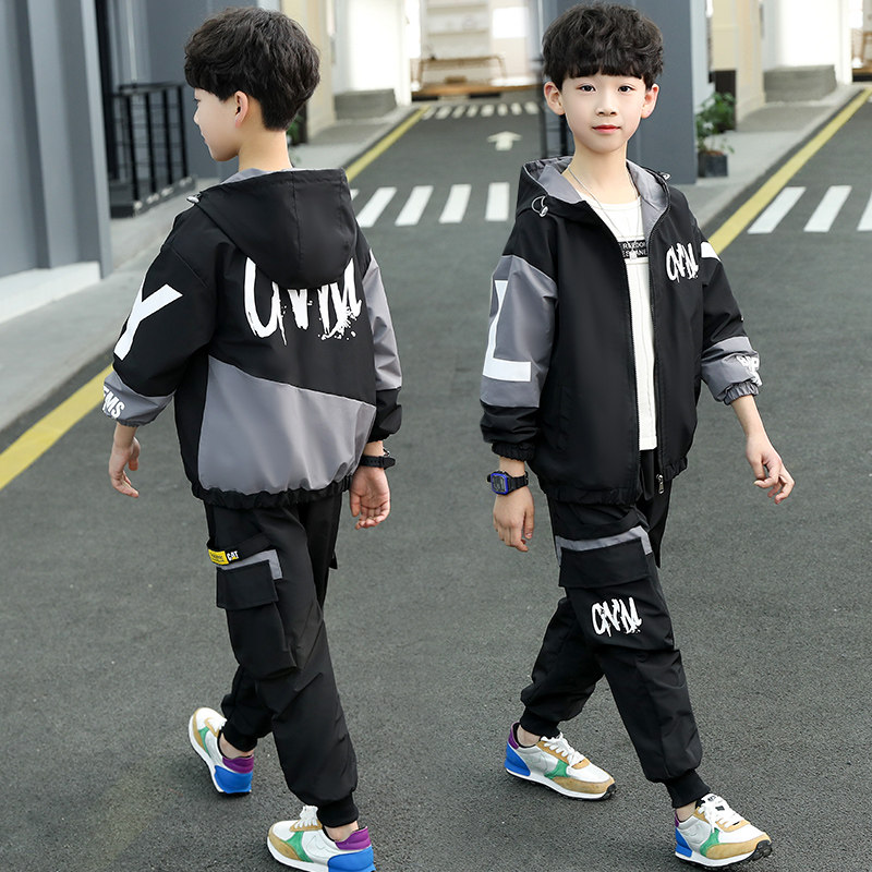 Boys' spring clothes 2021 new suit big boy handsome 12-year-old boy foreign style Korean version sports two-piece suit trendy