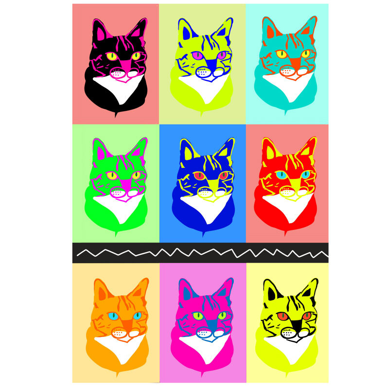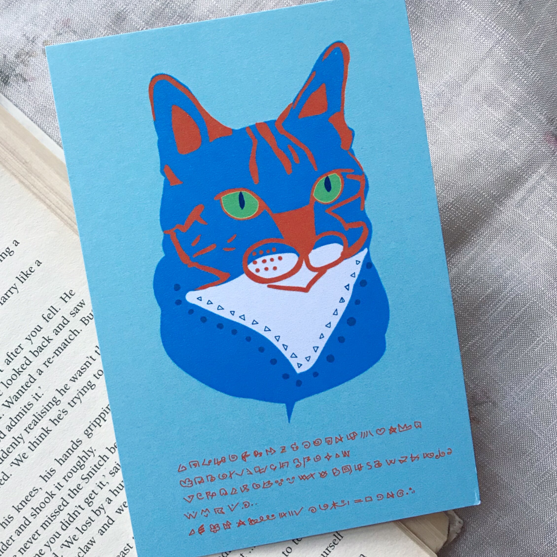 Anly original] hand-painted greeting card postcard cat and nine lives pop wind advanced pearlescent blue color