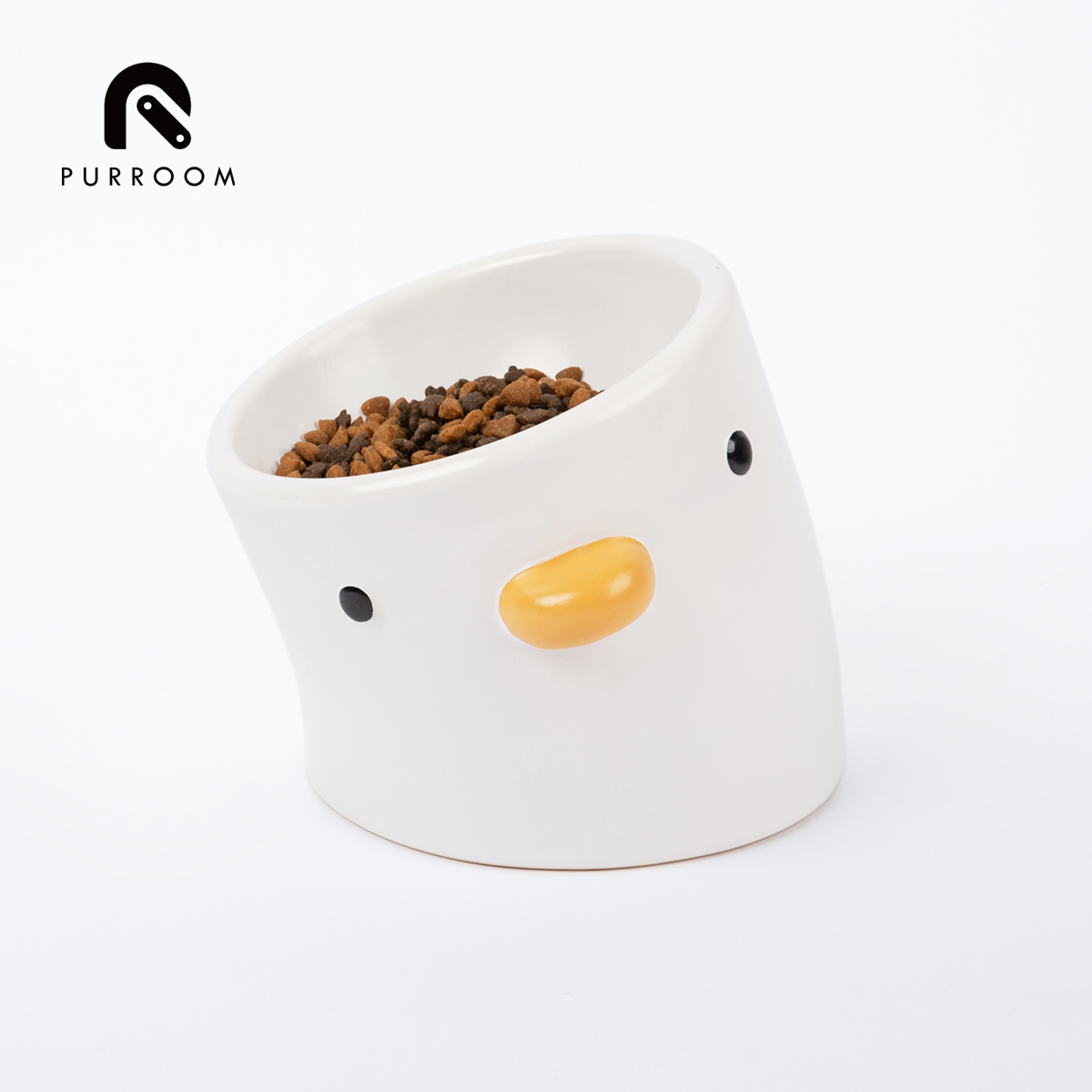 (Spot) PURROOM Little Chicken Diagonal ceramic Cat Bowl Plus High Foot Protection Cervical Spine Dog Basin Water Bowl Mark Cup