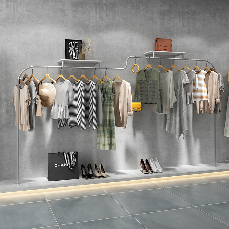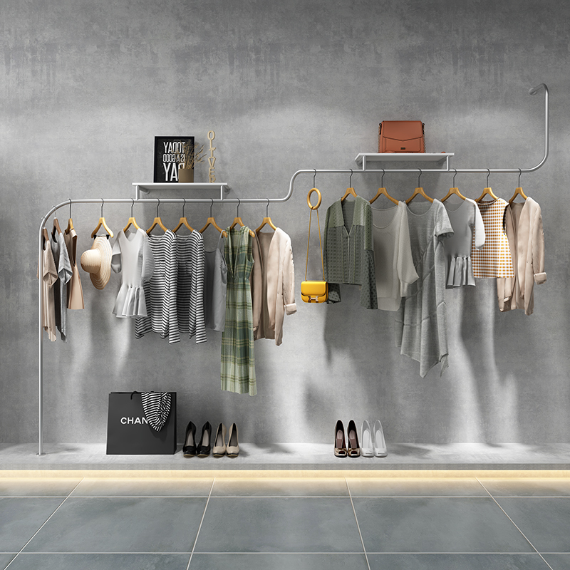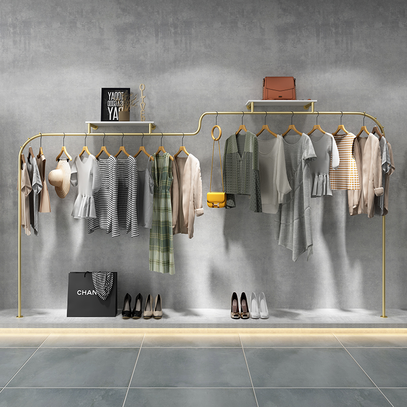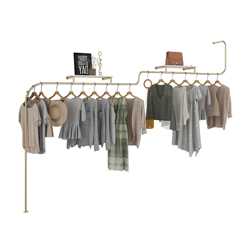 Clothing store shelves, wall-mounted gold display racks, women's clothing store special silver clothes hangers, custom-made