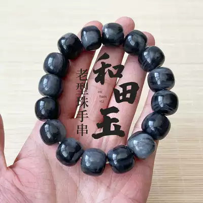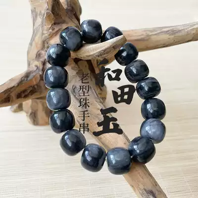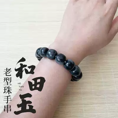 Xinjiang Hetian Jade old beads men's hand string blue and white jade transfer lady hand