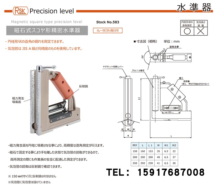 Japan RSK New Laxative Research Precision Gradienter 583-1502 150X0 02 L type magnetic gradienter