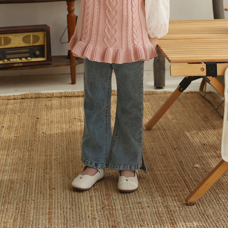 Girl Jeans 2021 Spring New Products Children Open Fork Pants Casual 100 Hitch Fascia Korean Version Long Pants Personality