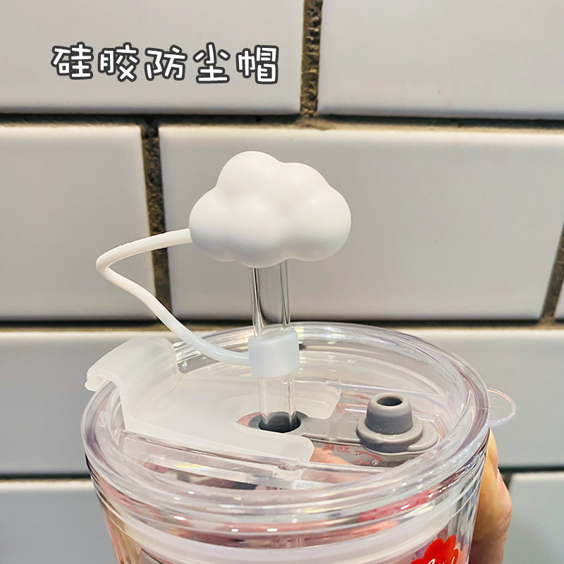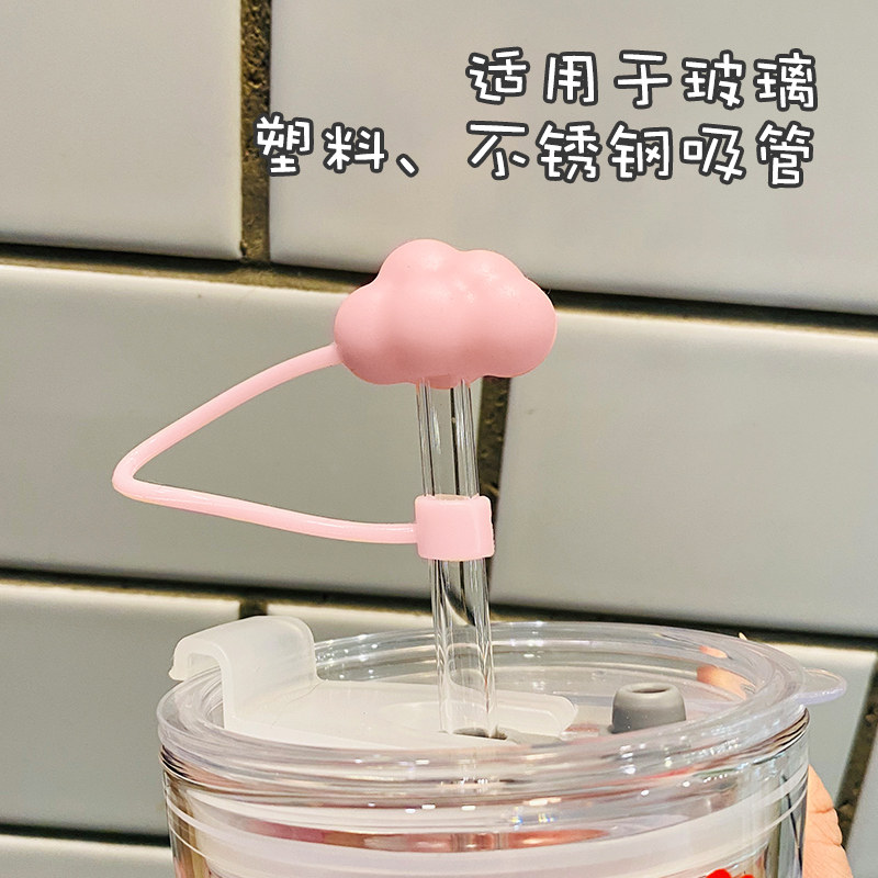 Net red glass straw cap dustproof and environmentally friendly cute girl straw cap nut silicone universal accessories dustproof plug