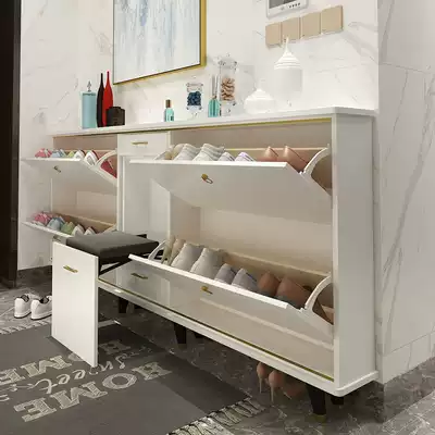 New Chinese multifunctional multi-layer solid wood vertical shoe cabinet ultra-thin door rear cabinet storage cabinet porch cabinet custom custom