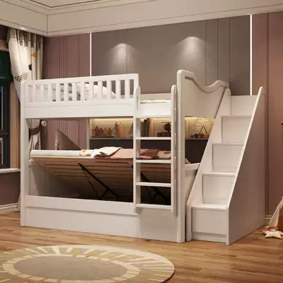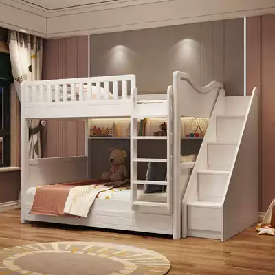Light luxury solid wood high and low bed Children's double layer two-layer parallel combination bed small apartment adult up and down the same width shop mother