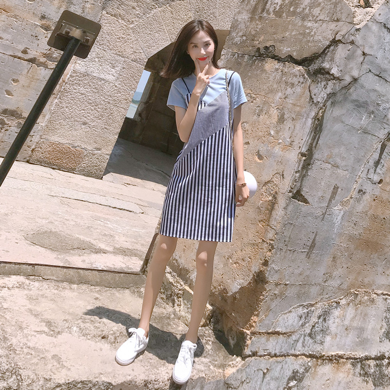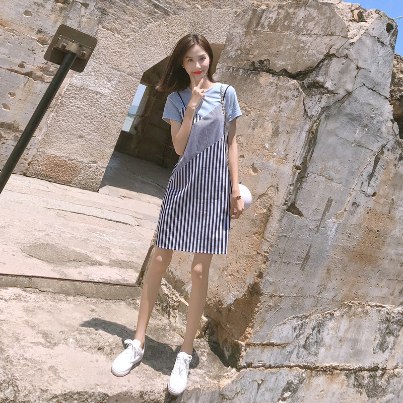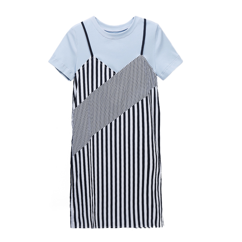 Blue Splicing Black Striped Ocean Dress S Blue Splicing Black Striped Ocean Dress M Blue Splicing Black Striped Dress L Blue Spliced Black Striped Ocean Dress XL