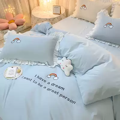 Rainbow style Korean four-piece bed set cotton cotton quilt cover cartoon embroidery bedding Princess style