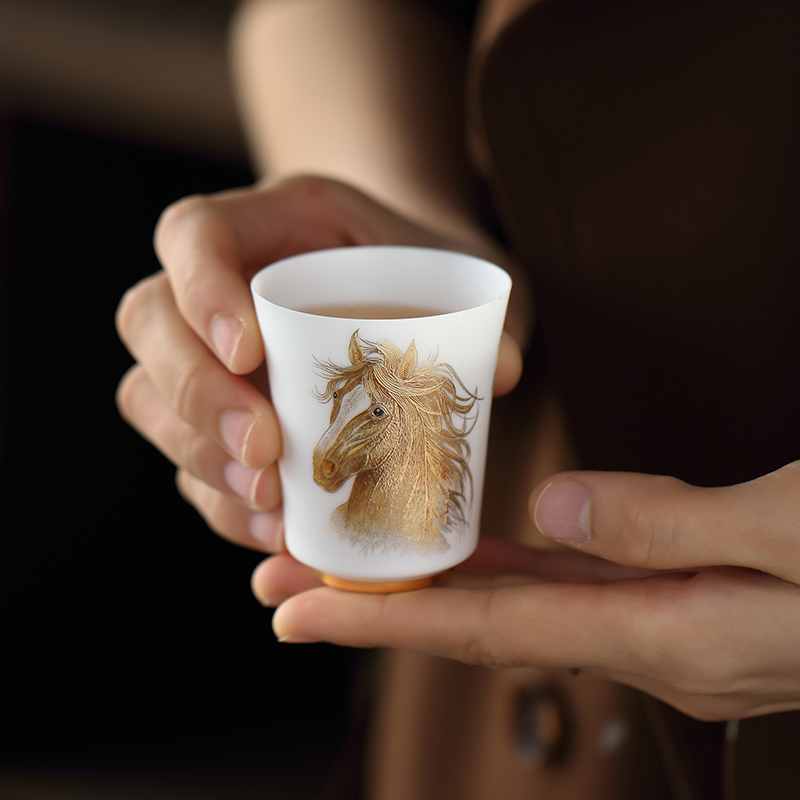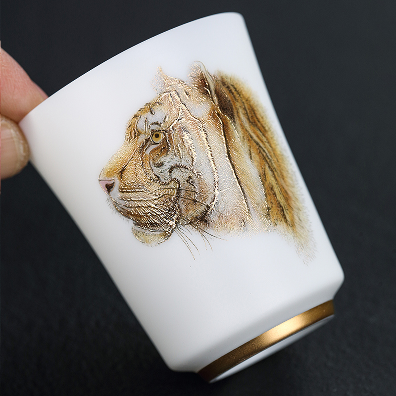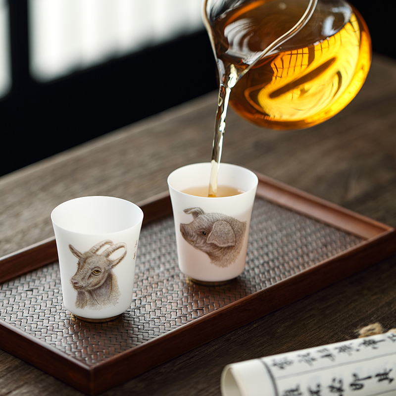 Chuanming goat fat jade duozodiac master cup Kung fu tea with white porcelain pint tea cup ceramic tea cup upscale gift box dress-Taobao