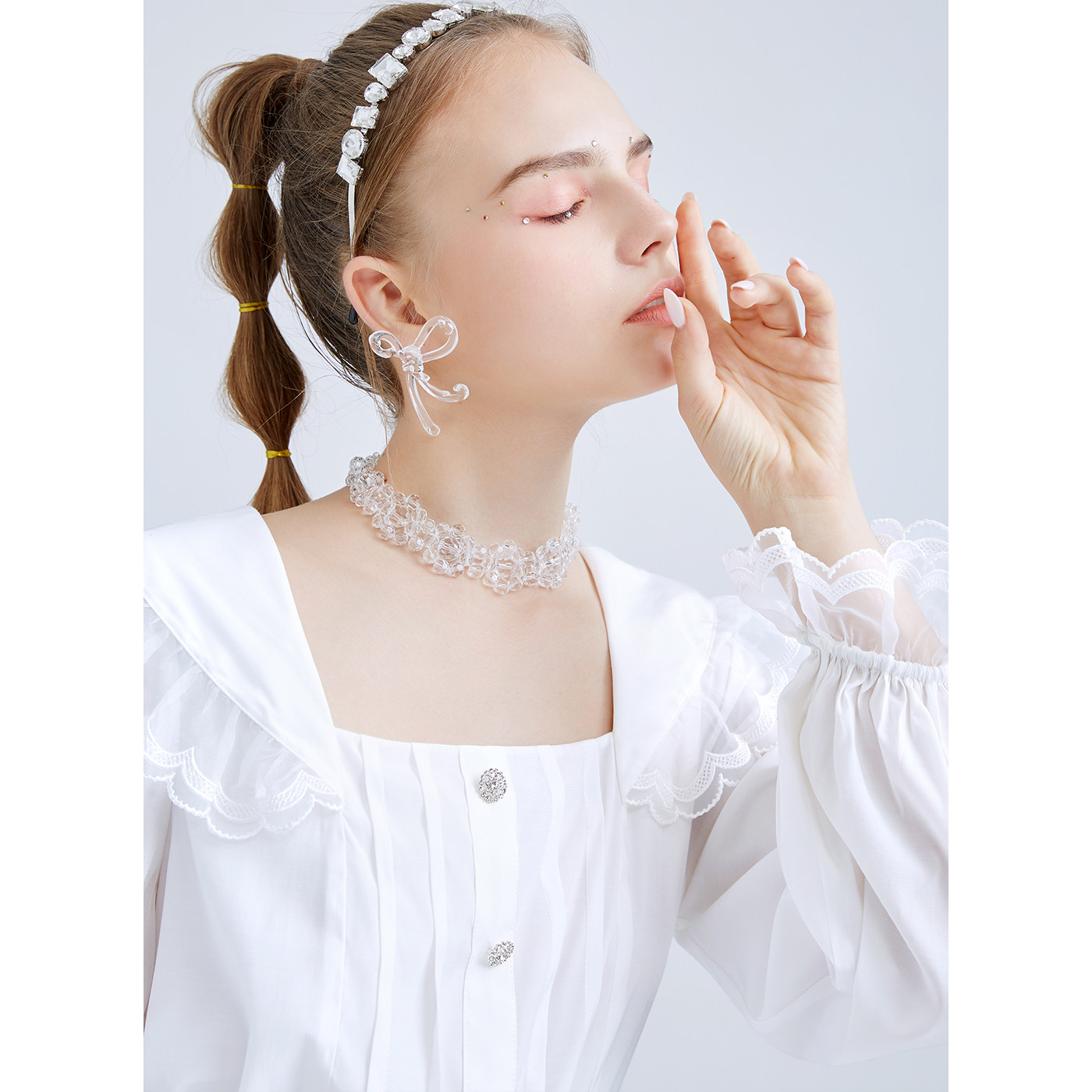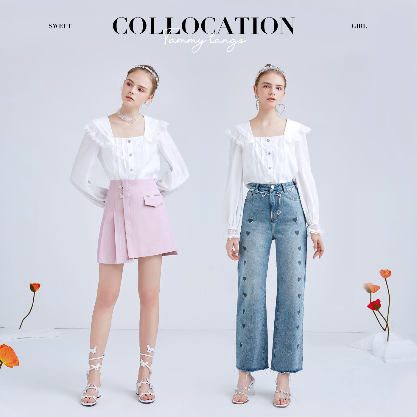 (Mall same paragraph) Sugar Force Spring Autumn Season New Long Sleeve Shirt Peter Panfang Collar Lotus Leaf Side Blouse Blouse Women