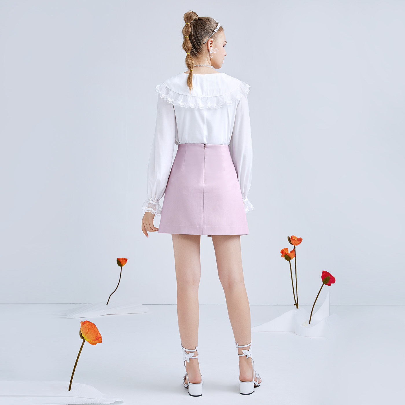 (Mall same section) Sugar spring autumn season Pink with purple high waist conspicuose half body dress Women irregular A-word dress short dress