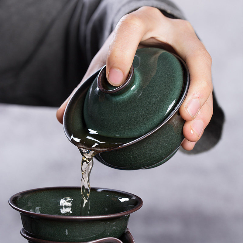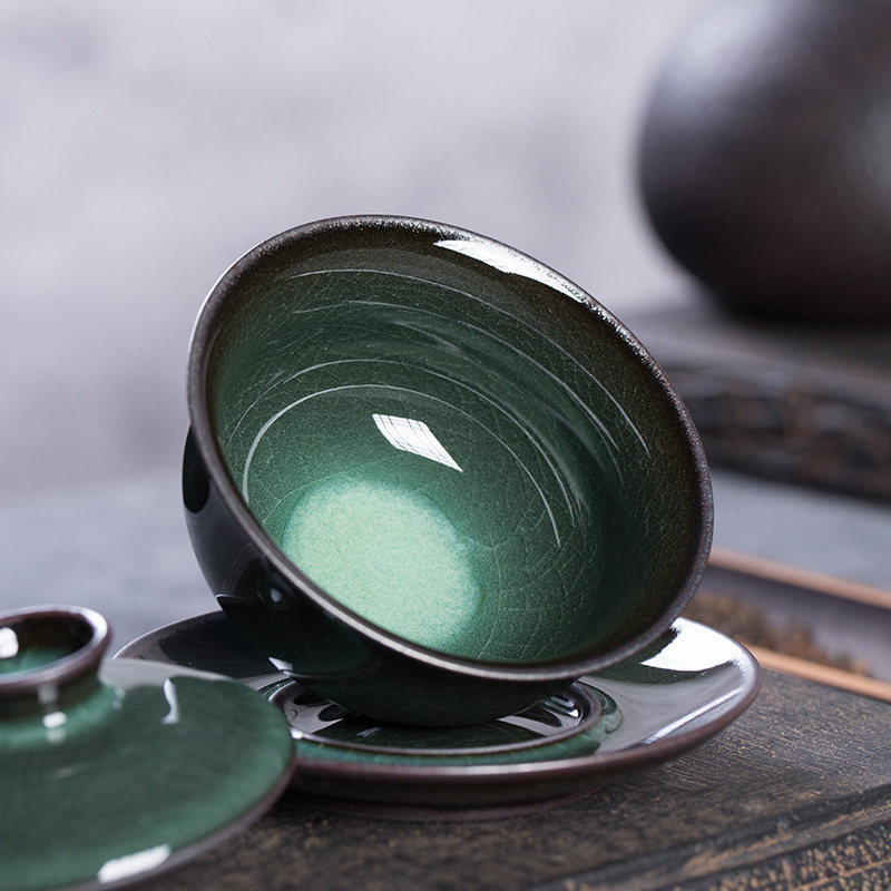 Ink Jade Glaze Iron Tire Green Porcelain Cover Bowl Powder Jade Glazed Iron Tire Green Porcelain Cover Bowl New Ink Jade Glazed Cover Bowl New Powder Jade Glazed Cover Bowl