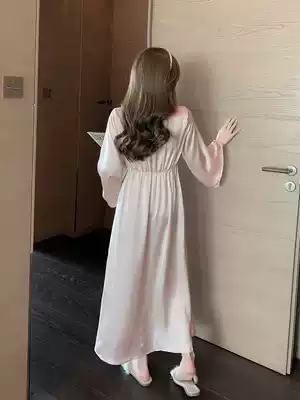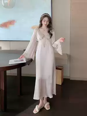 French style~Sexy stunner VIRRI CIAGA thin women's pajamas silk nightdress medium and long version sweet