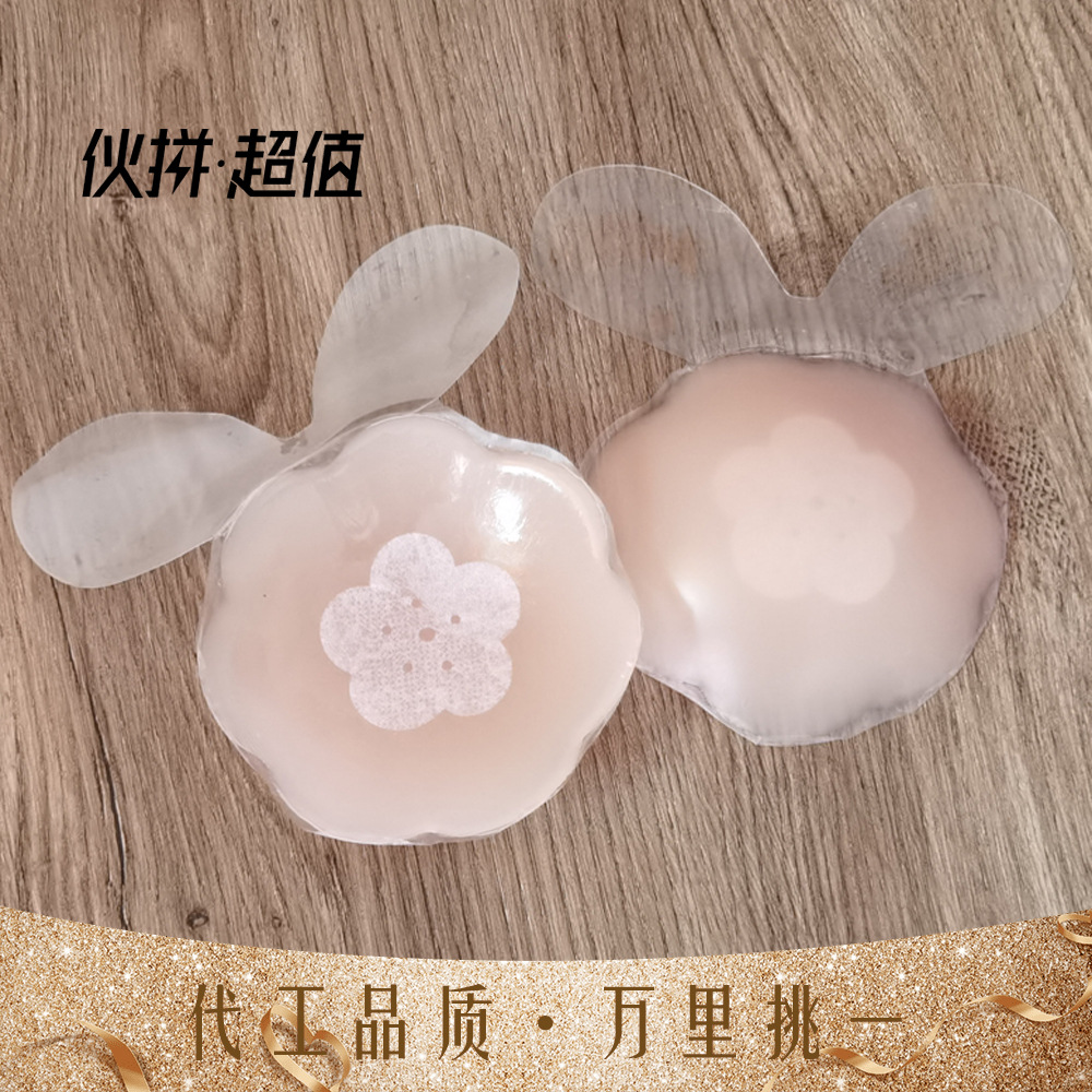 Breast stickers women's summer strapless rabbit ears pull silicone waterproof invisible bra gather anti-sagging flower-shaped nipple stickers