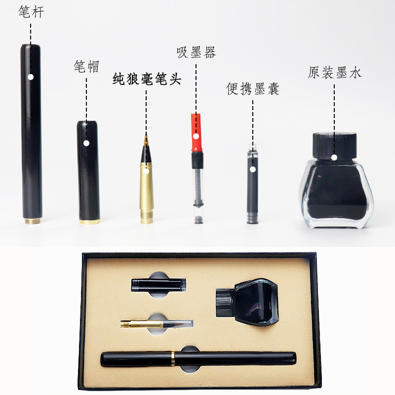 Paper and ink Gengtang soft pen pen-type brush running ink portable small case copying scripture pen calligraphy beginners tracing scripture copying practice character soft head automatic ink beautiful pen pure wolf hair writing scripture pen