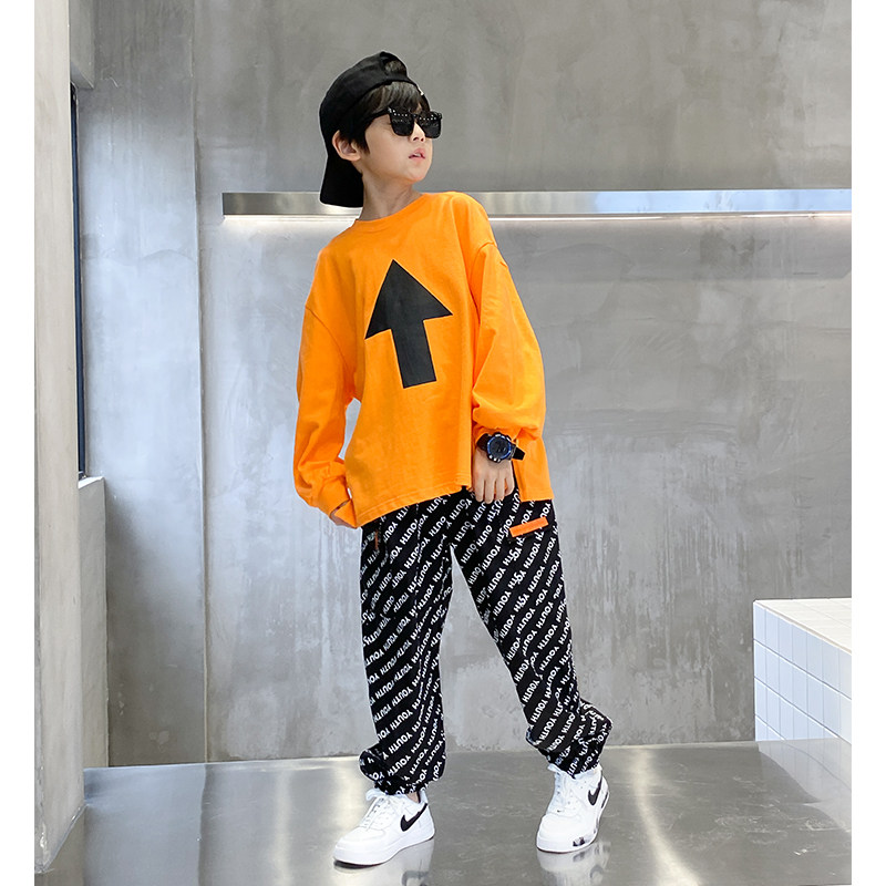 Boys' personality printed long-sleeved T-shirt 2022 new autumn dress loose Western school children's sweatshirt in the big boy top tide