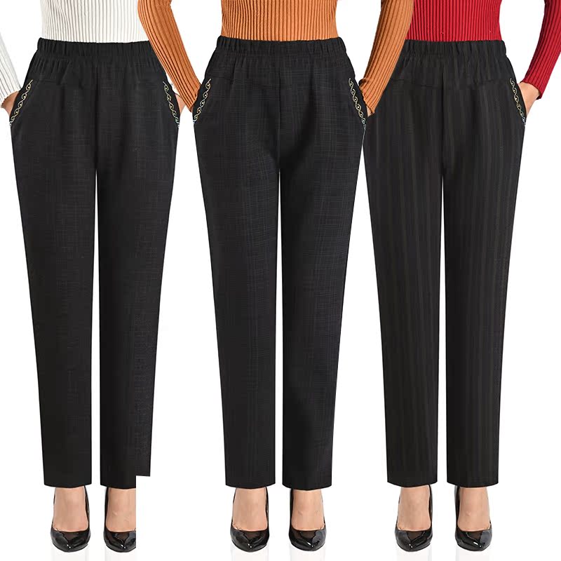 Middle-aged and elderly women's pants spring and autumn high waist outer wear mother pants old lady loose elastic waist straight pants grandma dress