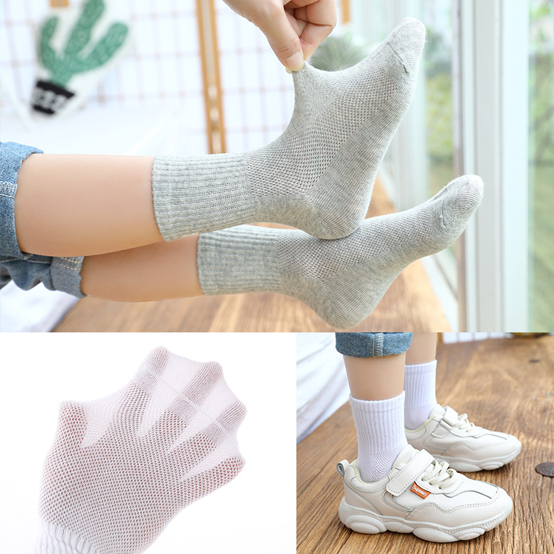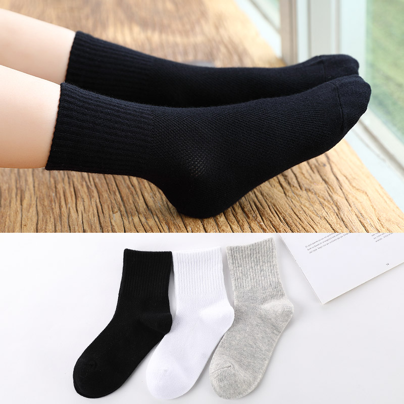 Children Socks Pure Cotton Spring Autumn Thin Section Boy Women Sports White Black Full Cotton Soft Middle Cylinder Mesh Elementary School Cotton Socks