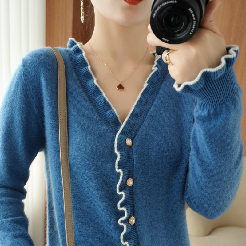 Cashmere Cardigan Women's 2021 Spring New 100% Wool Sweater Jacket Fashion Top Knitted Bottom Sweater