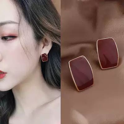 Explosive ~ wine red earrings high-end atmospheric earrings 2021 new trend simple, small and cold wind earrings