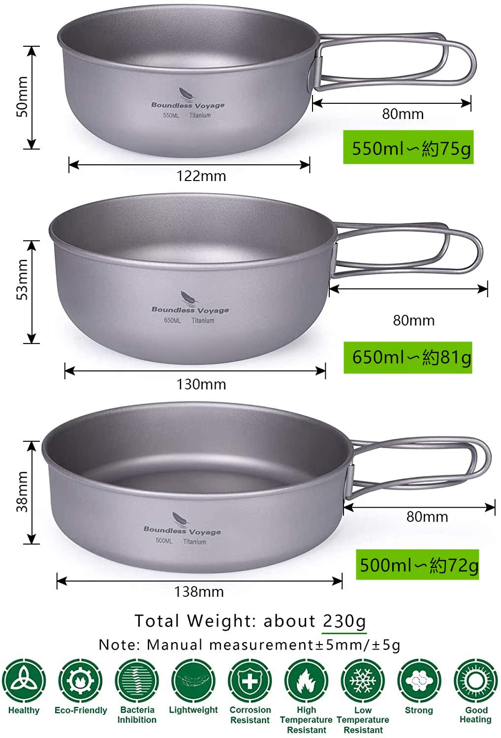 Boundless Voyage Mandatory Pure Titanium Outdoor Camping Titanium Bowl Three Sets Mini Titanium Pan Ultra Light Cooker