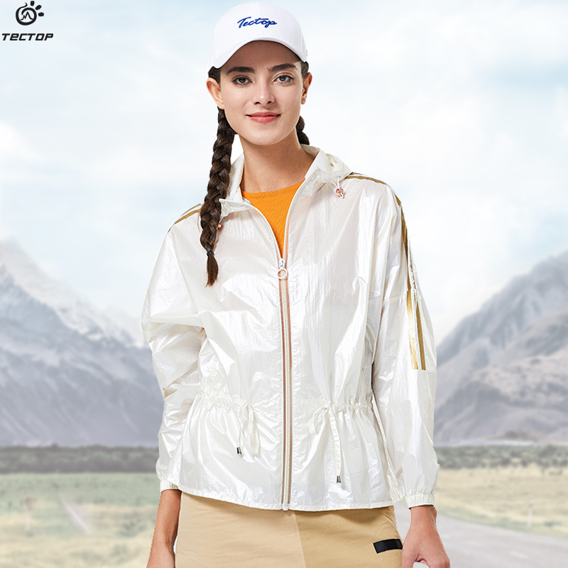 Explore the outdoor spring and summer new bright lady fashion leisure wear thin breathable hat sports coat