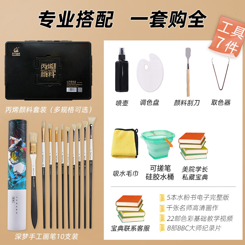 Green bamboo acrylic paint set jelly 42 colors 80 100ML student school exam art exam practice painting wall painting diy dye art student special tool set green bamboo painting material