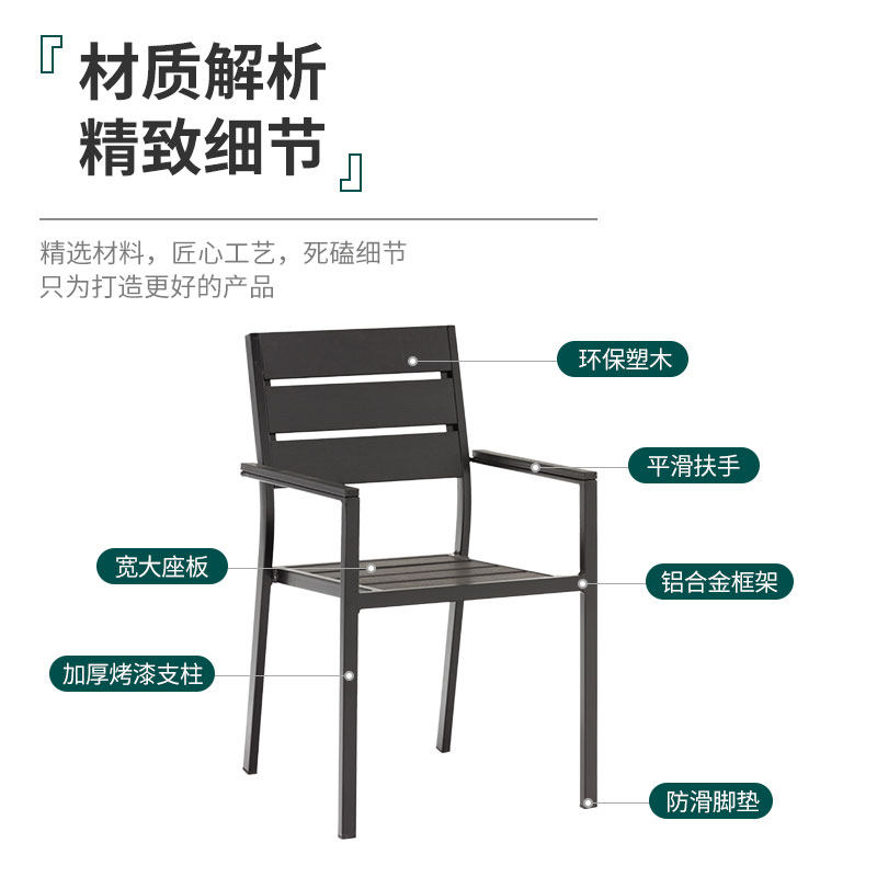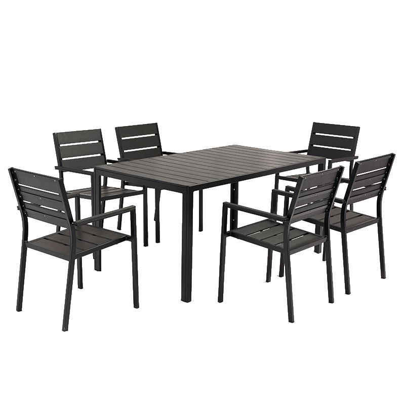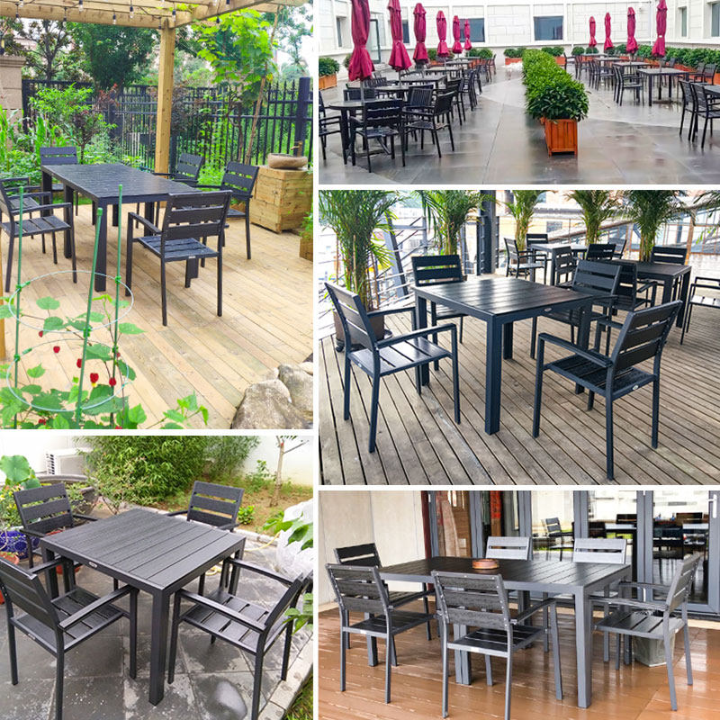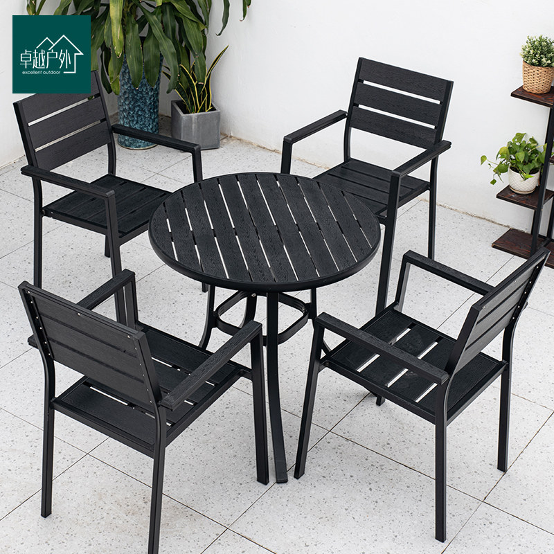 Outdoor Plastic Wood Table And Chairs Patio With Umbrella Outdoor Garden Villa Embalming Wood Dining Table And Chairs Open-air Balcony Plastic Wood And Chairs