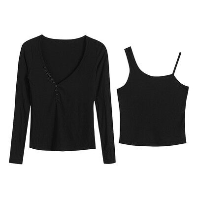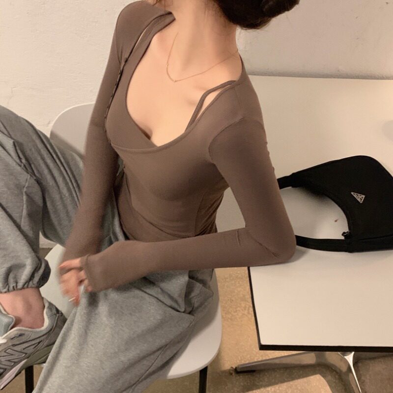 Vanya pure colored blouse autumn winter Han edition of the fake sexy thread fake two T-shirt coat