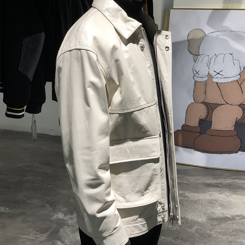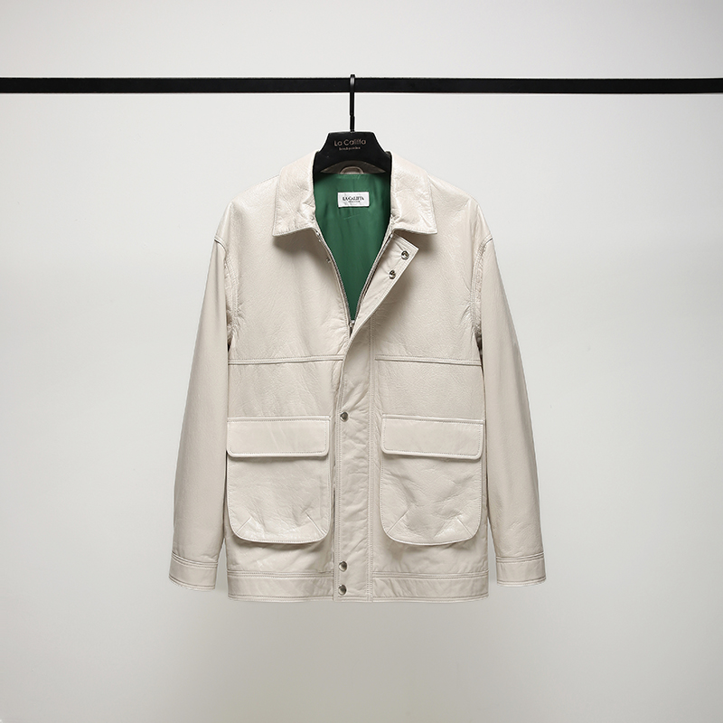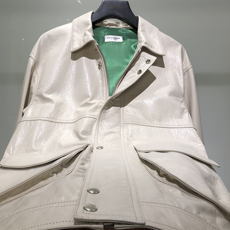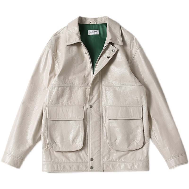 LA CALIFFA designer "Yangchun Snow" oil wax crack sheep skin OS loose version of industrial wind coat