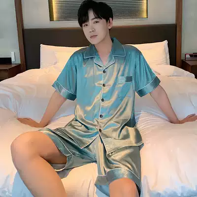 Men's pajamas short sleeve thin ice silk summer spring and summer simulation silk student cute cartoon home clothing set