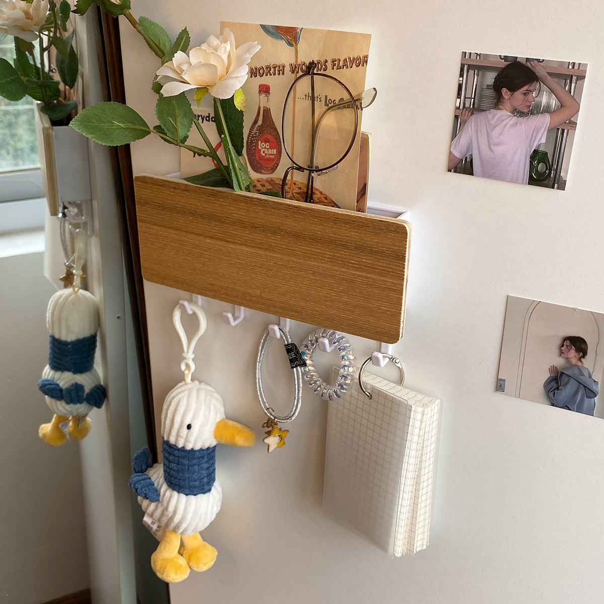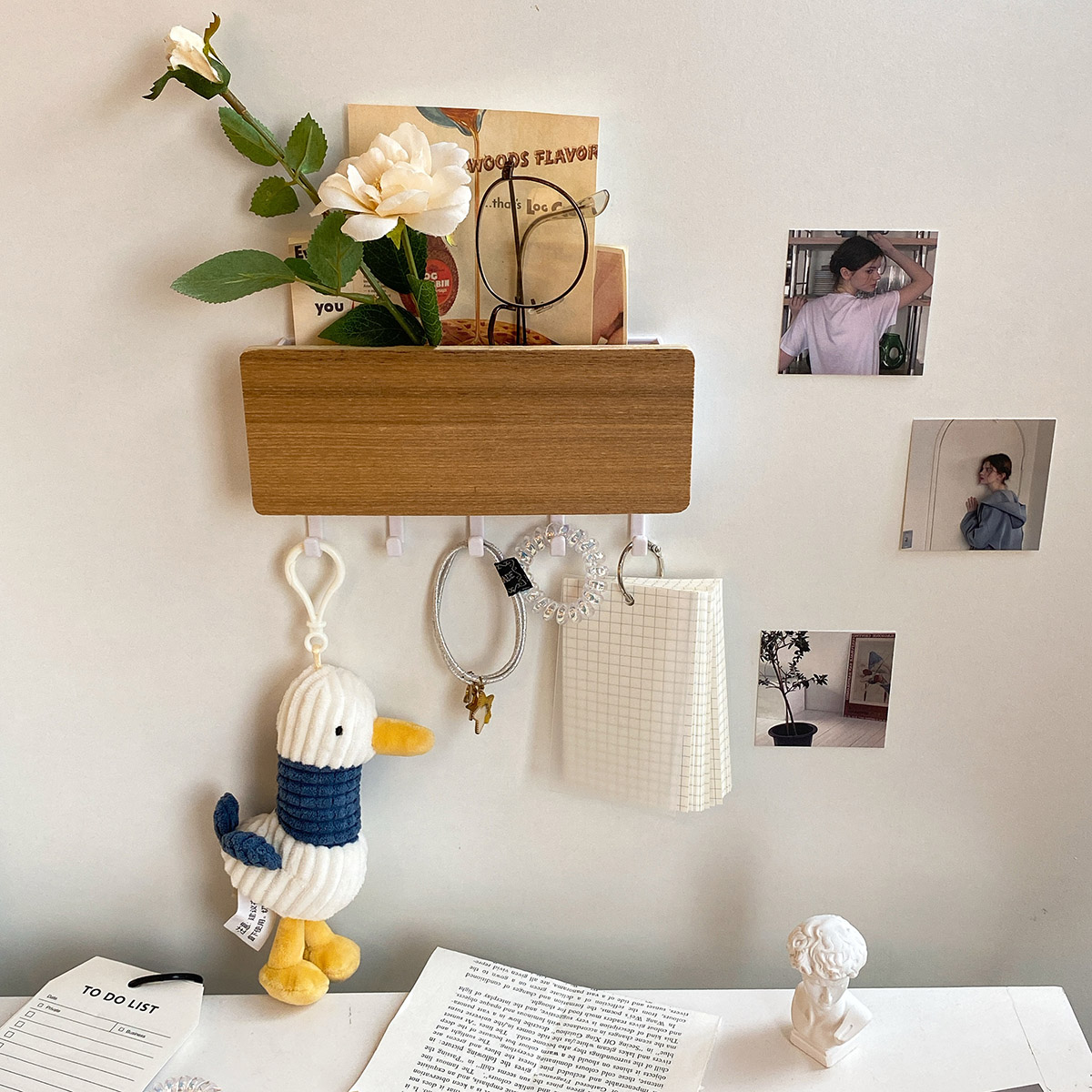ins simple wooden wall hanging storage box Japanese entrance key rack wall hook hanging shelf free of punching