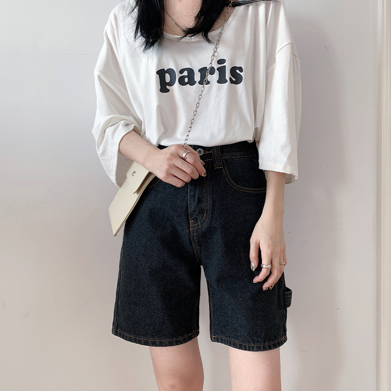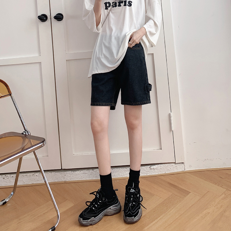 Black Grey Denim Shorts Female Summer Loose 2022 New web Red Thin High Waist Wide Pants External Wear Chains