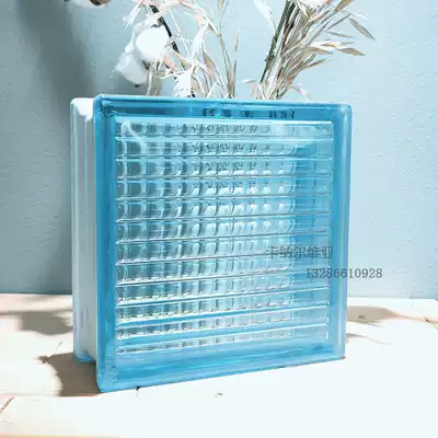 Imported original colored gem stone Blue Parallel grain transparent opaque square hollow glass tile powder room bedroom partition wall