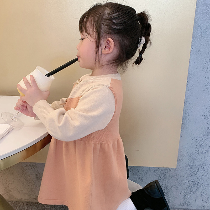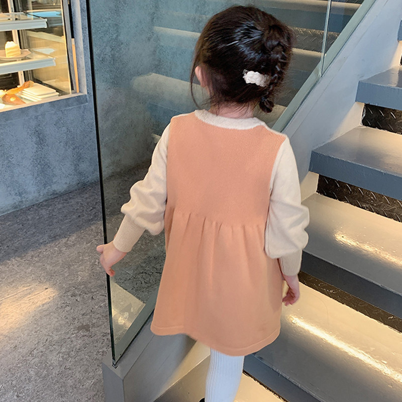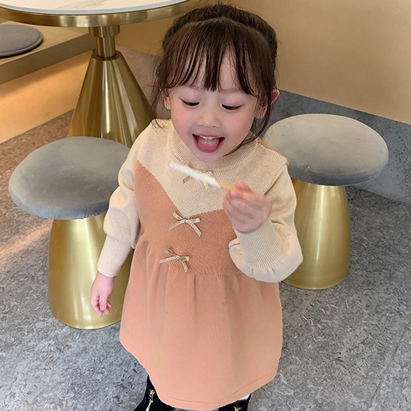 2022 spring and autumn new girls' warm knitted sweater children's Korean version temperament girl baby sweet butterfly dress