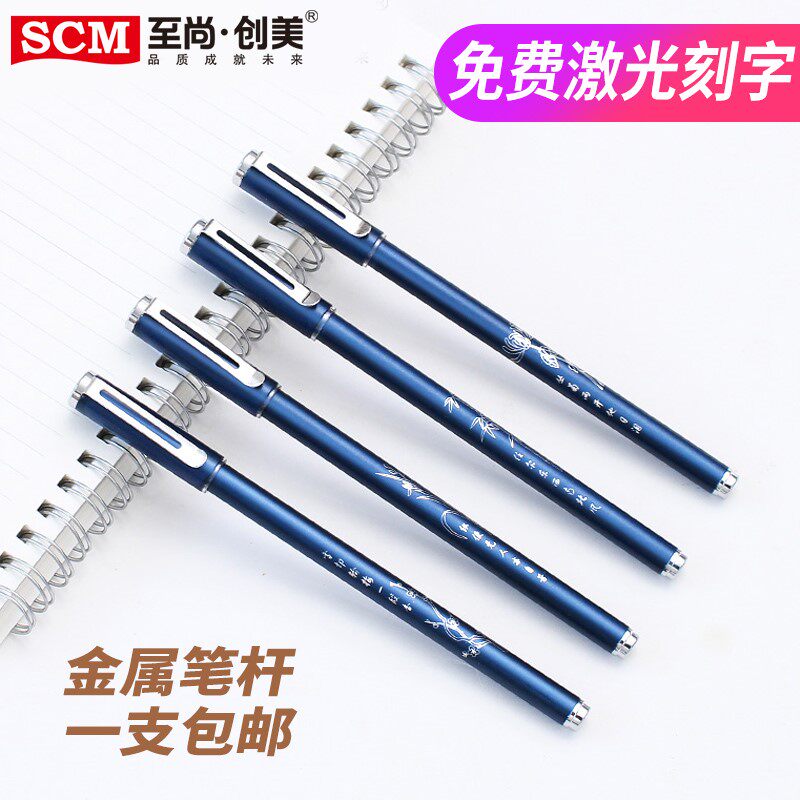 Metal Pen 0-5mm Sexual Pen Black Water-based Pen Business Office Sign Pen Creative Pen Students with Gupwind China Wind Four Gentleman Upscale Pen Lettering Private Customize