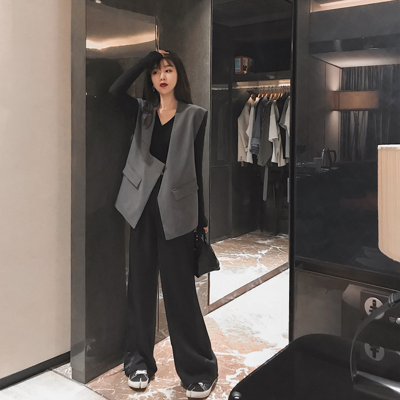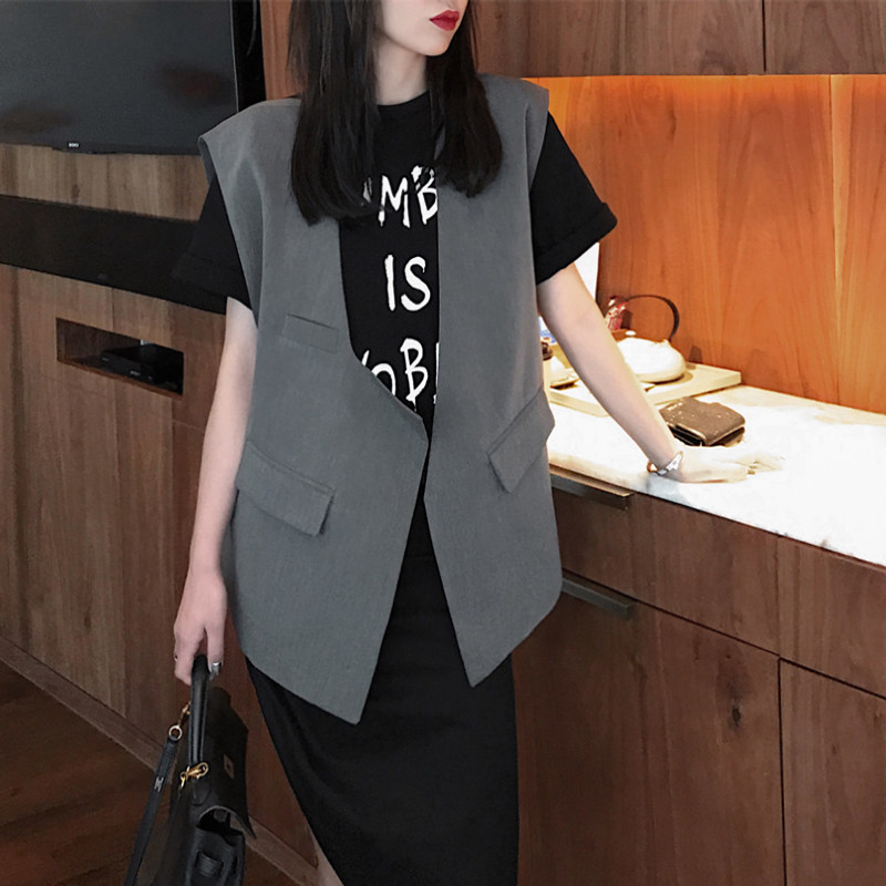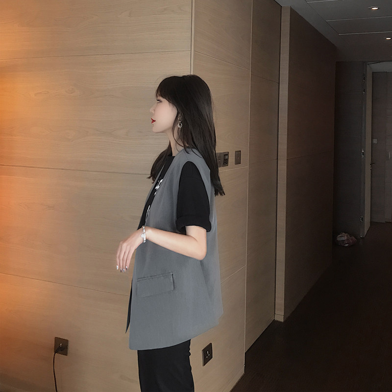 2021 new blazer vest women spring and autumn mid-length loose sleeveless outside wearing horse clip vest trend cam shoulder jacket