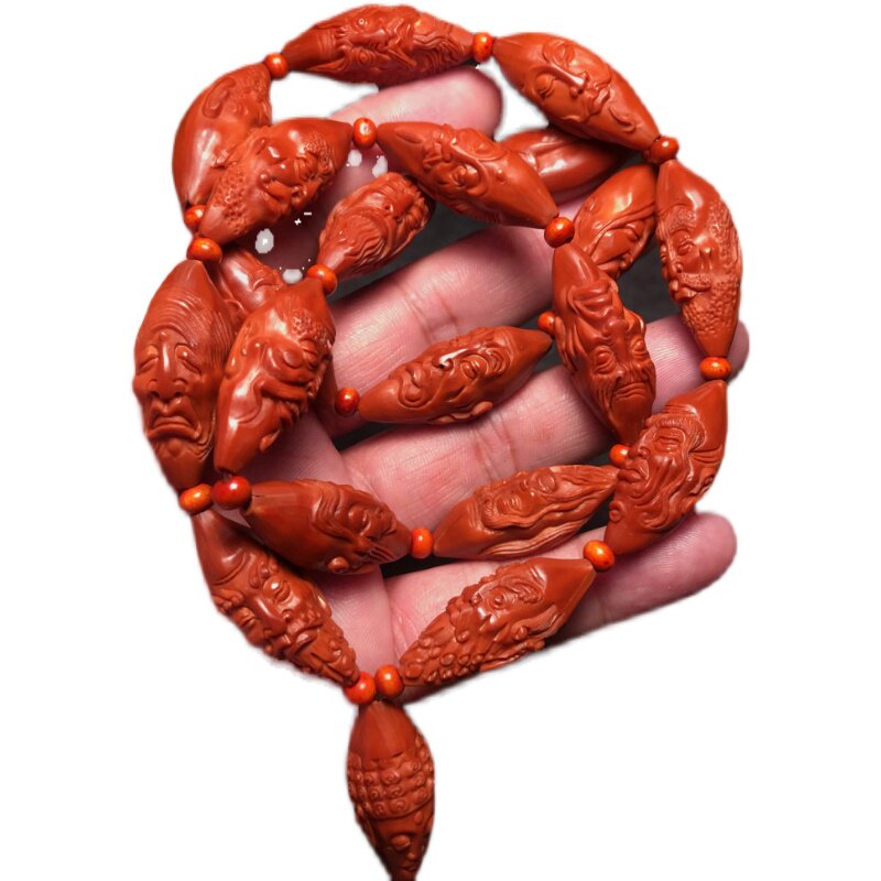 Willow leaf core single-sided 18 eighteen Luohan Sunan workers olive core carving long string necklace neck hanging chain men's and women's models