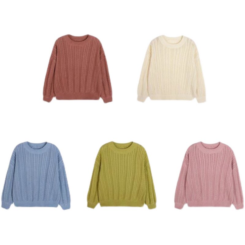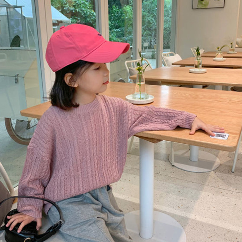 2022 New Children's Baby Girls Korean Sweater Versatile Spring and Autumn Western Style Round Neck Knit Sweater Loose Top