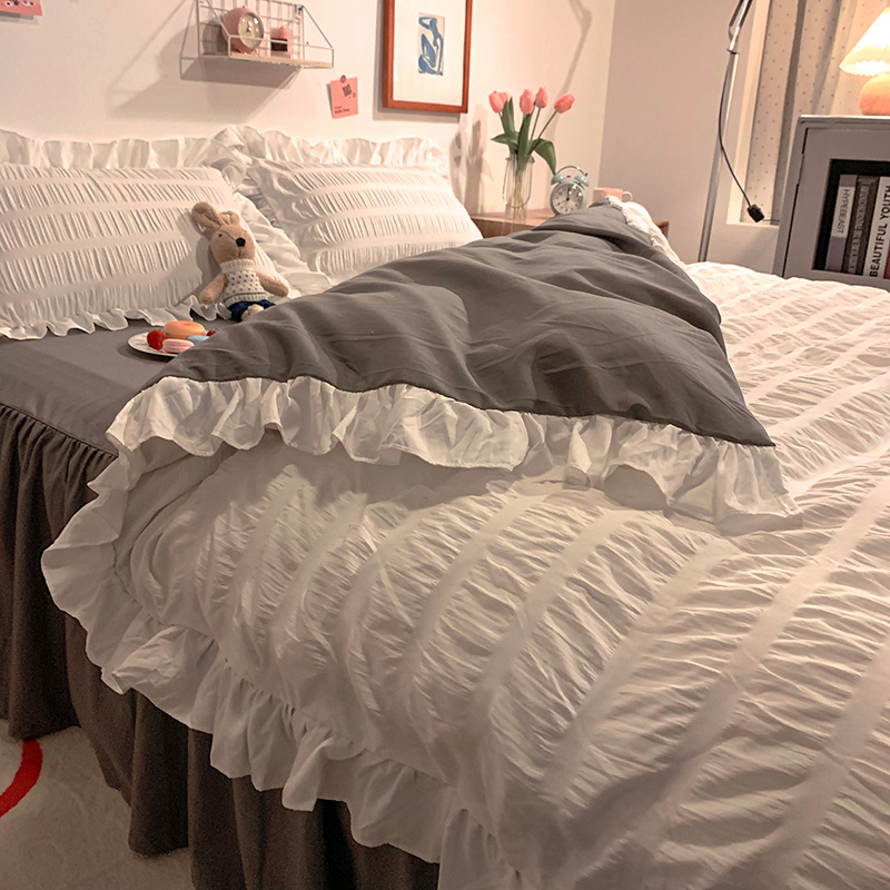 1.2 Bed sheets Suitable for 150*200 quilt cover Three-piece set medium bed sheet Applicable 180*220 quilt cover Four pieces 1.5 sheets Applicable 200*230 quilt cover Four-piece set 1.8 bed sheets Applicable 200*230 quilt cover Four-piece set 2.0 sheets Applicable 200*230 quilt cover Four-piece set 2.0 sheets Applicable 220*240 quilt cover Four-piece set 1.5 bed skirt Applicable to 200*230 quilt cover Four-piece set 1.8 bed skirt Applicable to 200*230 quilt cover Four-piece set
