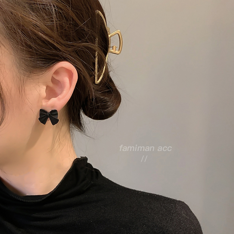 Net red bow earrings female 2021 new trendy 925 silver needle earrings Korean temperament retro Hong Kong style earrings