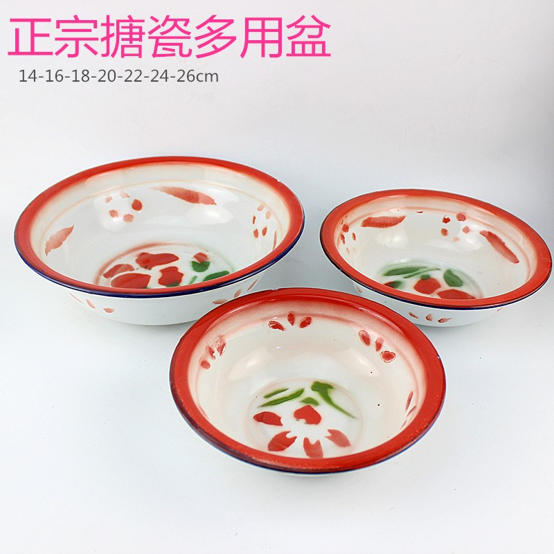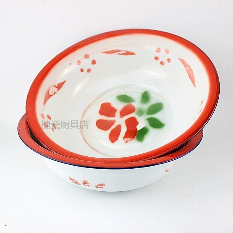 Curled Basin Red Home Basin Iron Bowl Nostalgia Old Rice Bowl bowl Bowl Thickened Enamel Basin