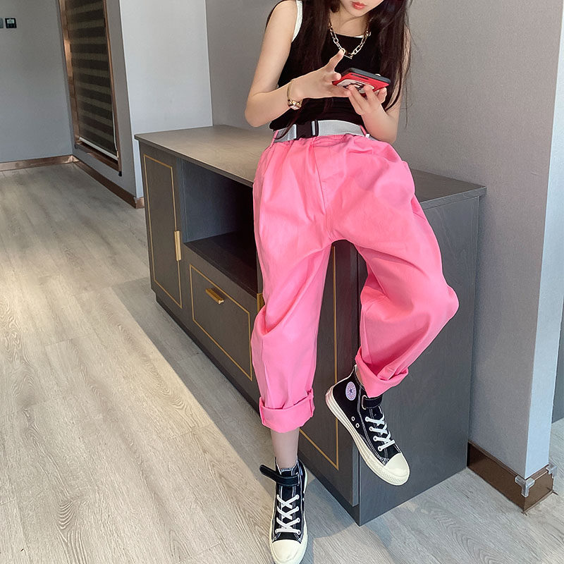 Girl's Rounder Pants 2021 Spring Autumn New Korean Version Loose Girl Foreign Pie Trousers Tide Children Casual Pants Trendy