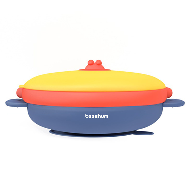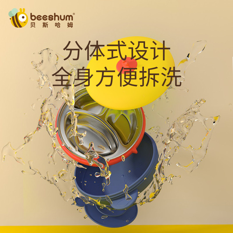 beeshum flying saucer baby plate grid Stainless steel children's tableware suction cup water-filled insulation bowl