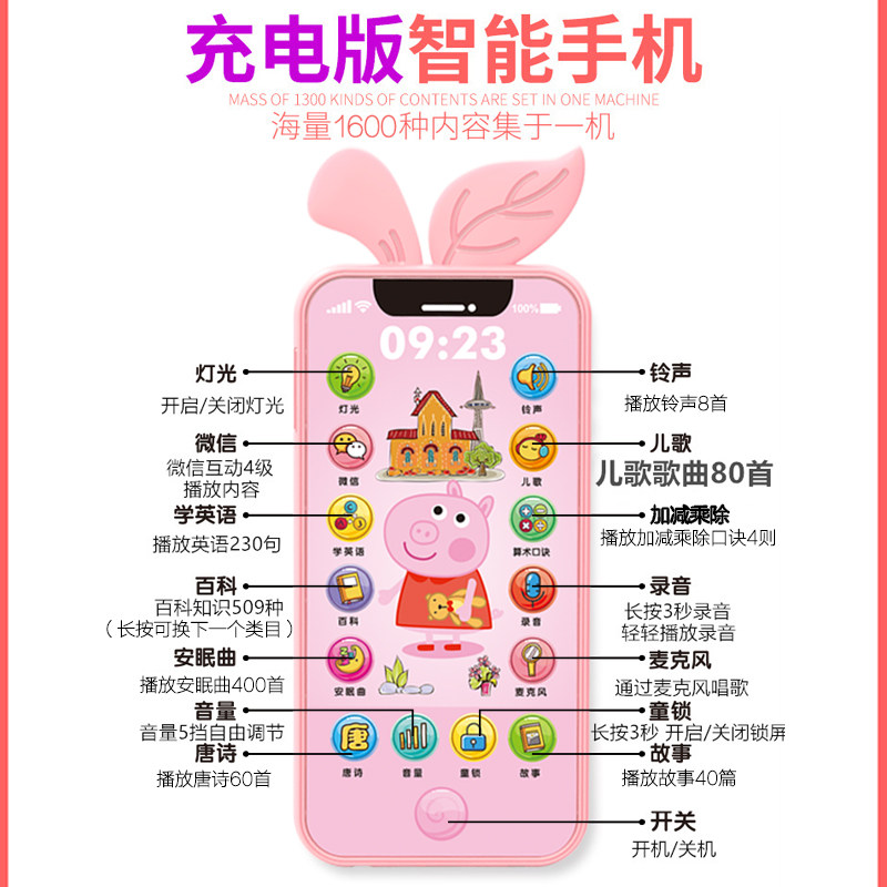 (Blue Pig Castle) Tooth Fixer Mobile Phone Case Early Education Touch Screen Tablet (Blue Pig Castle) Tooth Fixer Mobile Phone Case Husky (Yellow Shirt, Bell, Traction) (Blue Pig Castle)