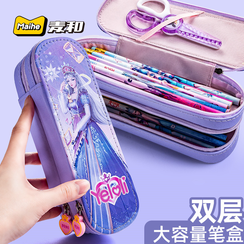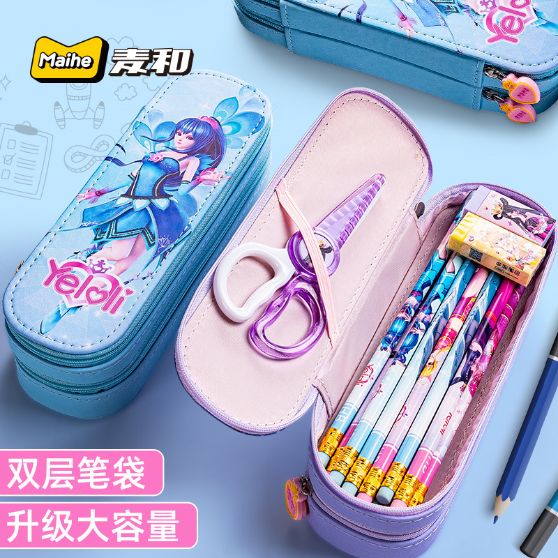 2021 New Leaf Roli Double Layer Pencil Case Elementary School Students Multifunction Creative Pencil Bag Children Teenage Girl Hearts Cute Cartoon Pop Ins Net Red Pen box Jane about large capacity Lead pencil case
