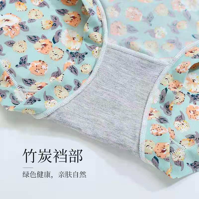 Milk silk skating silk underwear women's pure cotton crotch high waist quick-drying thin section without curling printing large size bag hip briefs