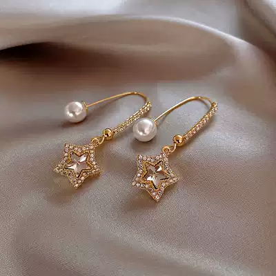 Advanced earrings 2020 New Tide temperament sterling silver long version earrings female pearl earrings thin face thin earrings