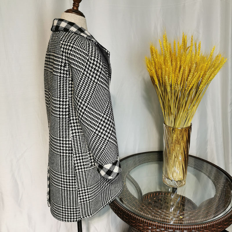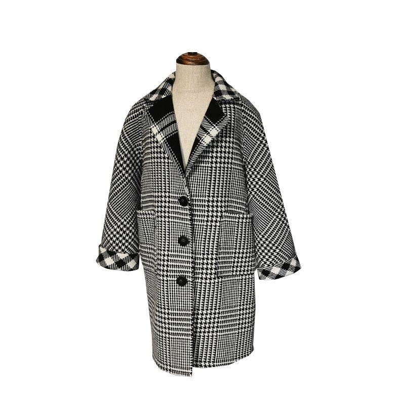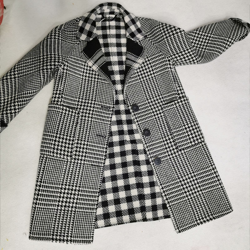 Children's black and white thousands of bird-in-face wool jacket boy single row of buttoned hair, great suit collar plaid outerwear