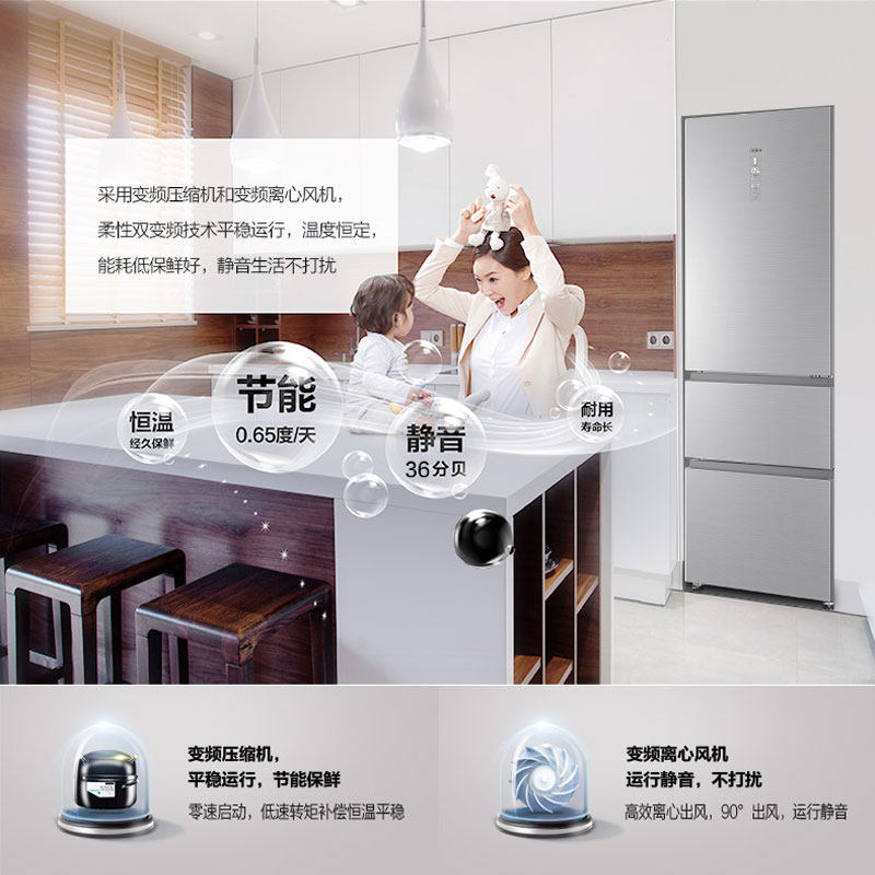 Haier 271 Liter Three Doors Small Fridge Home Temperature-controlled Intelligent Double Frequency Conversion 271WDCIU1 Refrigerated Air-cooled Freeze